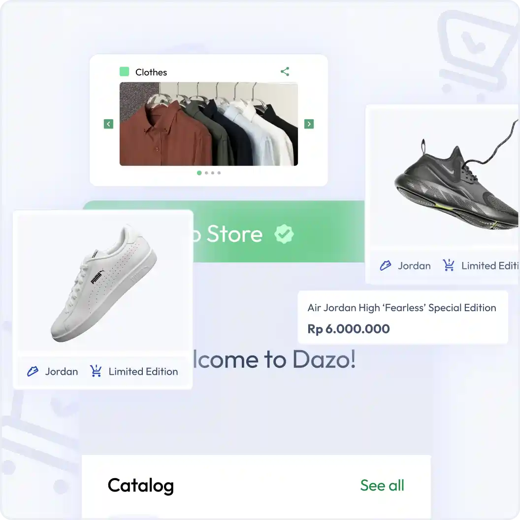 Dazo App adalah platform pengelolaan pesanan berbasis Ai yang dapat yang membantu bisnis secara otomatis. Dengan fitur Order Management, AI Chat Assistant, dan Digital Store, Anda bisa tangani pesanan lebih cepat, kelola chat pelanggan, dan buat tampilan toko online yang profesional dan sesuai dengan kebutuhan bisnis Anda.