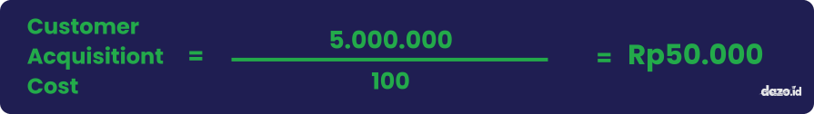 Misalnya, bisnis Anda menghabiskan Rp5.000.000 untuk Meta Ads dan dari kampanye tersebut Anda mendapatkan 100 pelanggan baru, maka: