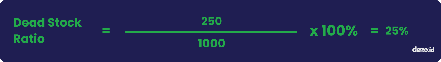 Contohnya, jika sebuah toko memiliki total 1.000 unit produk dan 250 di antaranya tidak terjual selama lebih dari 6 bulan, maka: